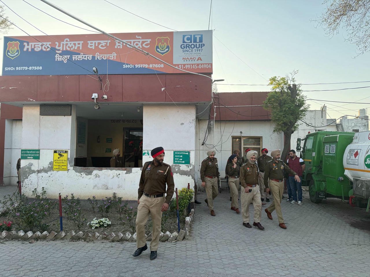 जालंधर, (सिटी तेज़ खबर ब्यूरो) जालंधर देहाती पुलिस के SSP श्री गुरमीत सिंह ने आज DSP कार्यालय शाहकोट, सांझ केंद्र शाहकोट और थाना शाहकोट का दौरा कर विभिन्न विभागीय कार्यों की समीक्षा की।उन्होंने सड़क सुरक्षा फोर्स, ERV टीम और कॉल 112 सेवा का भी निरीक्षण किया और आवश्यक दिशा-निर्देश जारी किए। इस दौरान SSP जालंधर देहाती ने सुरक्षा व्यवस्थाओं की जांच की और अधिकारियों को निर्देश दिए कि जनता की सेवा और कानून व्यवस्था में सुधार के लिए हरसंभव प्रयास किया जाए।इस मौके पर अधिकारी, थाना प्रभारी और अन्य पुलिस स्टाफ मौजूद रहे। SSP ने जोर देते हुए कहा कि कानून-व्यवस्था बनाए रखना, नशे के खिलाफ लड़ाई और आम जनता का कल्याण पुलिस की सर्वोच्च प्राथमिकताएं रहेंगी।