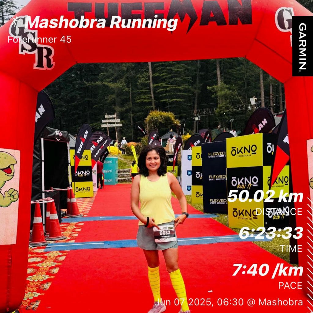 अल्ट्रा – मशोबरा। पहाड़ियों के बीचोबीच हिमाचल प्रदेश के मशोबरा में ही उसने अपना सर्वश्रेष्ठ समय हासिल किया था। 7 जून, 2025 को पूजा टफमैन अल्ट्रा 50 किमी मैराथन की स्टार्ट लाइन पर खड़ी थी। ऊंचाई अधिक थी, हवा पतली थी और रास्ता कठिन था। लेकिन उसका संकल्प भी ऐसा ही था। मशोबरा के घुमावदार रास्तों से दौड़ते हुए उसने 6 घंटे और 23 मिनट का अविश्वसनीय समय निकाला और 7:40 प्रति किमी की गति से प्रथम स्थान प्राप्त किया यह याद दिलाता है कि महानता हमेशा जोर से नहीं होती; कभी-कभी, यह एक महिला होती है जो चुपचाप एक-एक कदम करके अपनी सीमाओं को आगे बढ़ाती है।