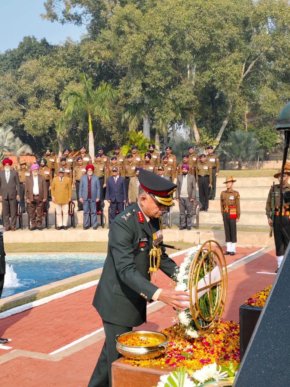 समारोह की शुरुआत वज्र युद्ध स्मारक पर एक भव्य पुष्पांजलि समारोह के साथ हुई, जहां लेफ्टिनेंट जनरल अजय चांदपुरिया, एवीएसएम, वीएसएम, जनरल ऑफिसर कमांडिंग (जीओसी) वज्र कोर ने शहीद नायकों को श्रद्धांजलि दी , तीनों सेवाओं का प्रतिनिधित्व करने वाले वयोवृद्धों ने भी राष्ट्र के लिए सर्वोच्च बलिदान देने वाले बहादुरों को श्रद्धांजलि देते हुए पुष्पांजलि अर्पित की। वज्र सैनिक संस्थान में आयोजित एक बातचीत और अभिनंदन कार्यक्रम में 200 से अधिक वयोवृद्ध, वीर नारियों और उनके परिवारों ने भाग लिया इस अवसर पर सेना के पाइप बैंड द्वारा बजाए गए “वी फॉर वेटरन्स” की प्रेरक धुनों से गूंज उठा।